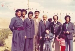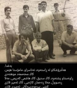 لە شانی چەپەوە بەڕێزان نەبی قادری. ئەحمەد قازی. حەمەدەمین سیراجی. شەهید دوکتور قاسملوو. سارمەدین سادق وەزیری. ئەمیر قازی. سەنار مامەندی. غەنی بلوورییان(باش دیار نییە). ساڵی ۱۹۸۰٫۱۳۵۸