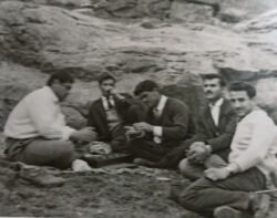 لە ڕاست ڕا: ئەسعەد، قادر، (هەردوو خەڵکی قازیئاوا)، کاک مستەفا فەتاح قازی، وەهاب قازی، و کاک جەعفەر پاشا (خەڵکی قازیئاوا).