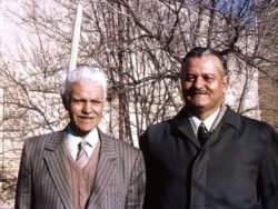 لە ڕاست را : حوسێن و خەلیل فەتتاح قازی. تەورێز، شەقامی حافز، کۆلانی خان، ژمارە 22، ساڵەکانی 1353-1350