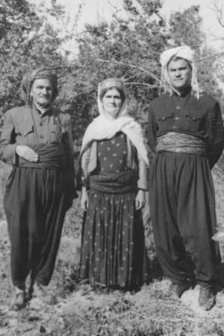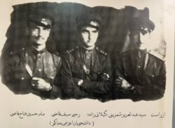 لە چەپ ڕا: وجیهە (خێزانی سەرهەنگ حەسەن فەتاحی قازی)، شاهسوڵتان قازی و ڕەحیم فەتاح قازی.