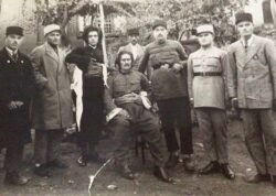لە ڕاستەوە : خەلیل فەتاحی قازی ، ڕەحیم جەوانمەرد قازی ، مەنسوور قازی ، دانیشتوو : عەبدوڵڕەحمان جەوانمەرد قازی ، موحسین ئاغا موجاهیدی (کوڕی شەهید قازی فەتاح) ، قاسم قادری قازی ، محەمەد فەیروزی