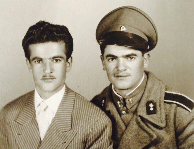 لە ڕاست را : حوسێن و خەلیل فەتتاح قازی. تەورێز، شەقامی حافز، کۆلانی خان، ژمارە 22، ساڵەکانی 1353-1350