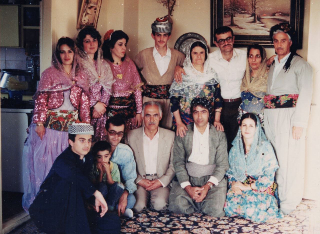 لە شانی ڕاستەوە نادر قازی (خاڵە قازی). (؟. نەسرین. کەماڵ، خوشک و بران). ناسر قازی. سیما قازی. کامڕان قازی. پەرەنگ قازی. لوقمان فەتاح قازی. شیرین قازی. شیبا قازی. نەشمیل قازی. کاک ڕەسووڵ مەجیدی لە پشت سەری منداڵەکان ڕاوەستاوە. دوورتر زینەت خانمی خێزانی حاجی عەبدوڵڵا. کاک بڕایم قازی. ساڵەکانی ۵۴ی هەتاوی لە ماڵە خۆمان لە گەڕەکی وەفایی.