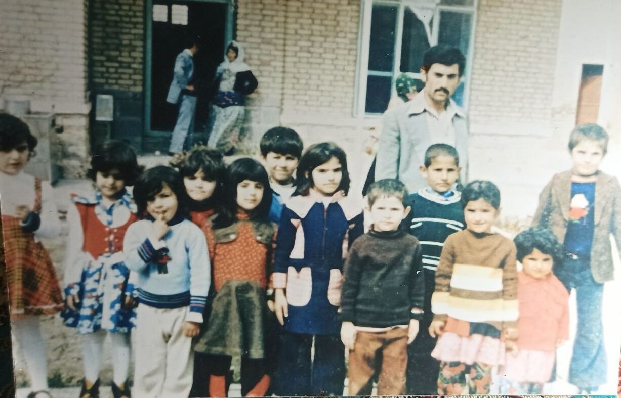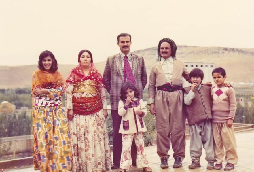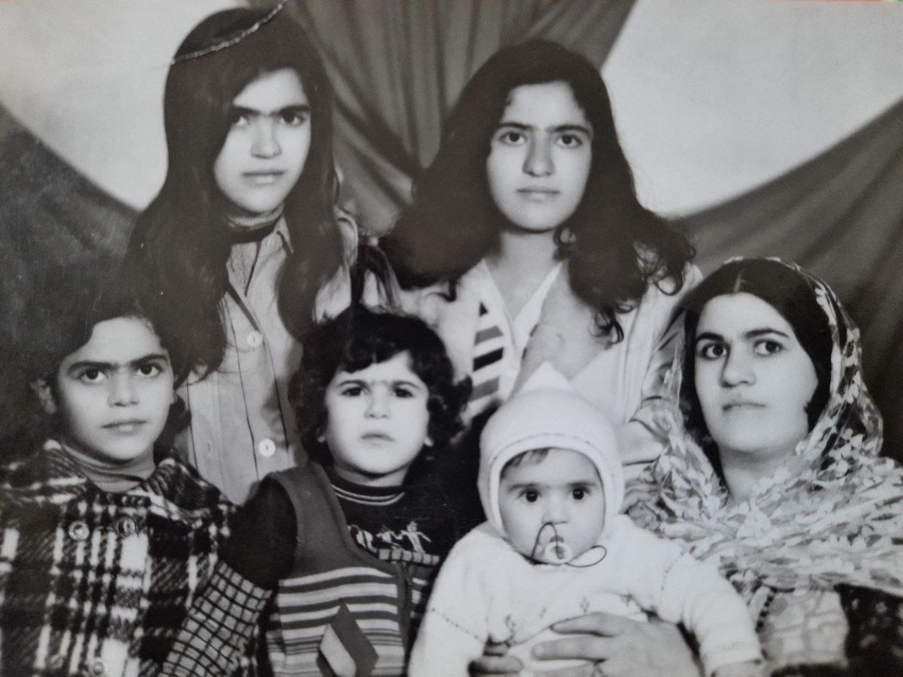 کبرا جەوانمەردی قازی ( خێزانی کاک مستەفای قازی) و منداڵەکانی : مامشاد ، گزینگ ، مریم و ڕاوەستاو لە پشتەوە لەڕاستوە نادیا و فەریبا ، سالی ١٣٥٤