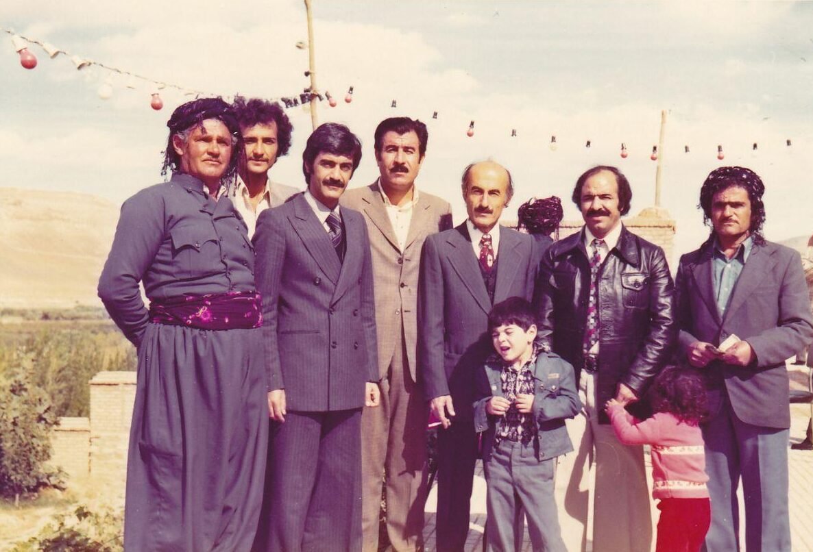 لە ڕاستەوە : جەعفەر تەوحیدی ، سەکینە خانم فەتاحی قازی ، ئیبڕاهیم قازی ، فەوزیە خانم عەلیار ، ڕەحمان میسباح قازی ، فەریبا خانم قازی ، مام ڕەزاق فەتاحی قازی