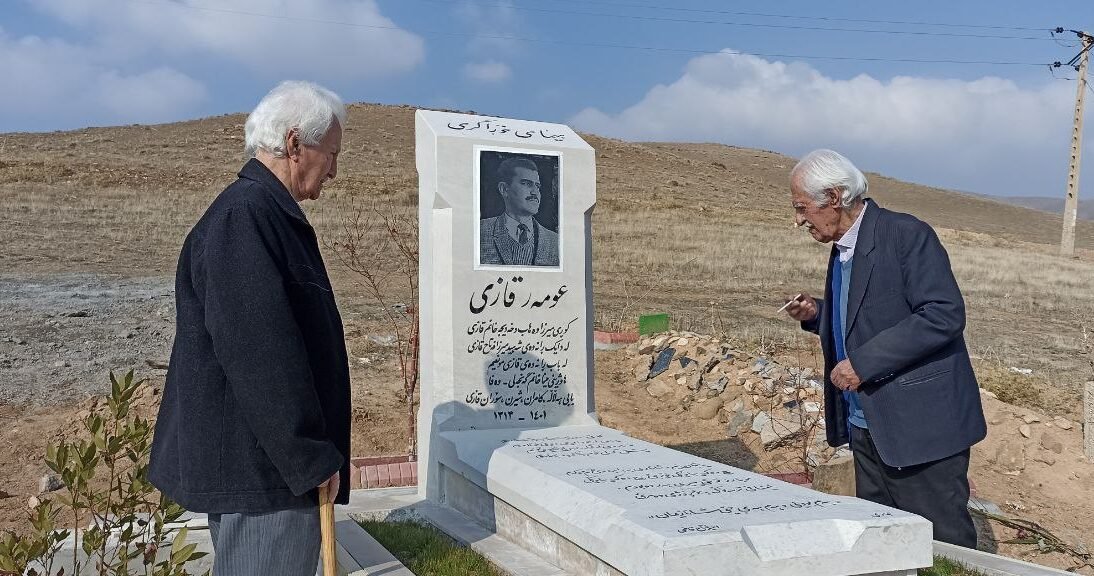 لە ڕاستەوە : خەلیل فەتاحی قازی ، ڕەحیم جەوانمەرد قازی ، مەنسوور قازی ، دانیشتوو : عەبدوڵڕەحمان جەوانمەرد قازی ، موحسین ئاغا موجاهیدی (کوڕی شەهید قازی فەتاح) ، قاسم قادری قازی ، محەمەد فەیروزی