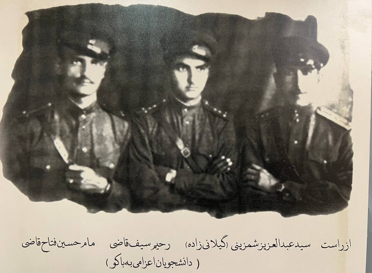 لە چەپ ڕا: وجیهە (خێزانی سەرهەنگ حەسەن فەتاحی قازی)، شاهسوڵتان قازی و ڕەحیم فەتاح قازی.