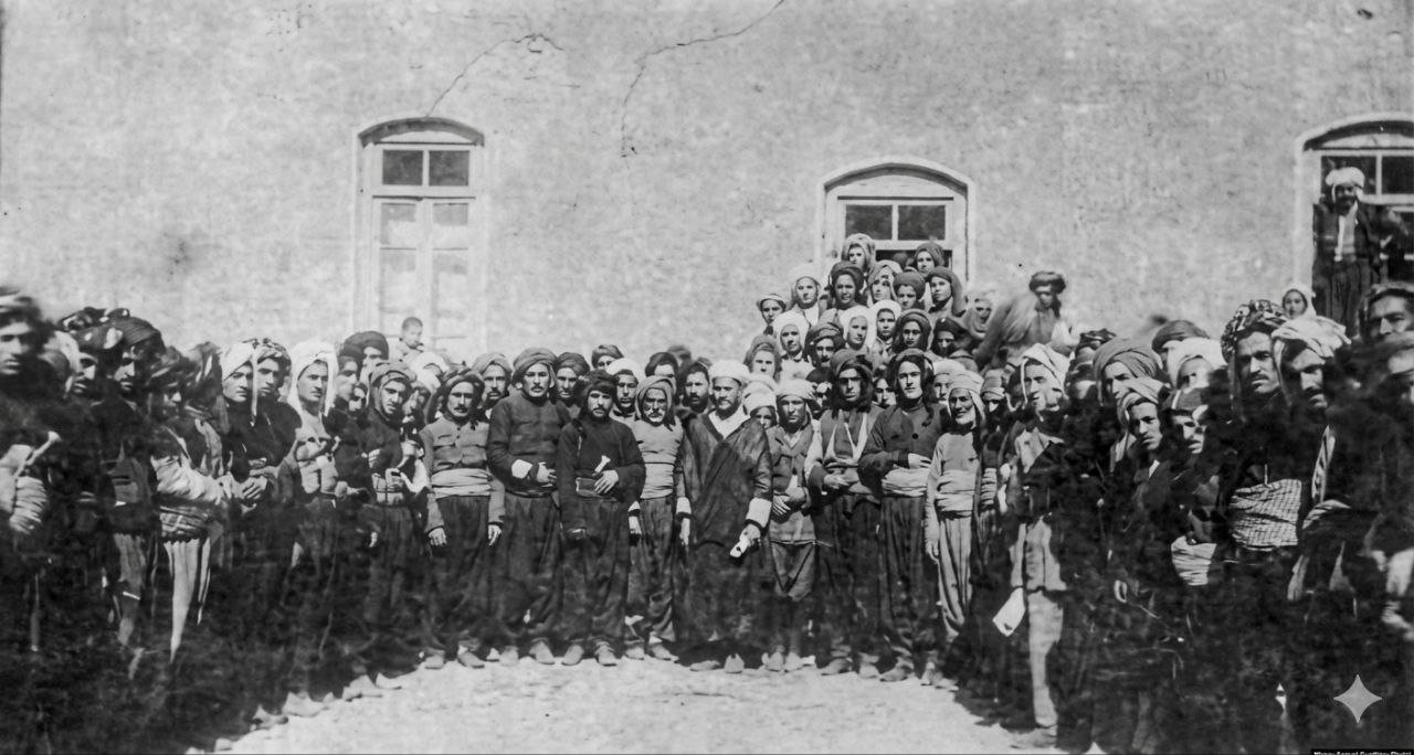 لە راستەوە: مامە رەزاق، عیسمەت خانم، مینا خانم ئامۆزا، رەحیم، ئامینە خانم، مریم خانم، کاک ئیبراهیم، مینا خانم گەنجعەلی، رقیە خانم، قیسەر خانم، باجی خانم (شاسوولتان)٫ سەکینە خانم فەتاحی قازی.