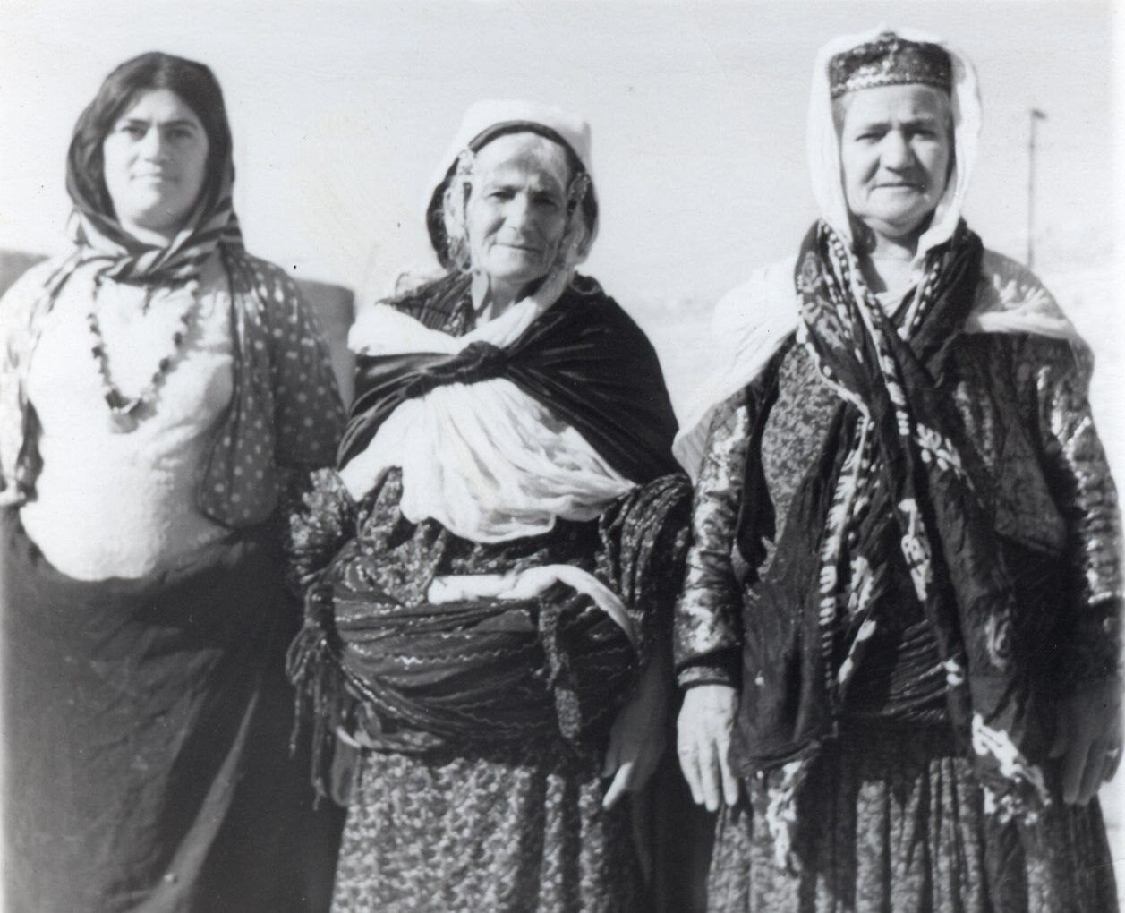 لە راستەوە : حاجی ھاجەر خانم ژنی قازی کەریم، یای مرێم خۆشکی حاجی ھاجەرخانم ، کوبرا خانمی جەوانمەرد قازی کچی عبدالرحیم جەوانمەردی قازی .